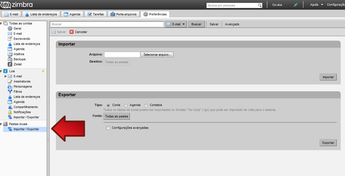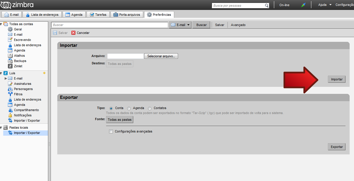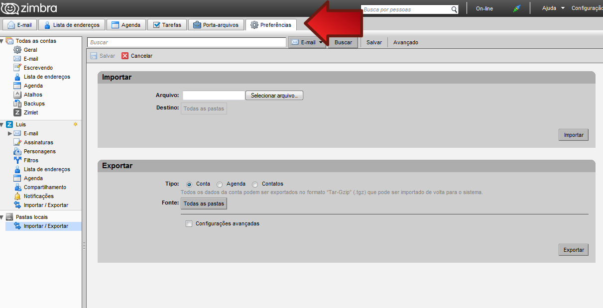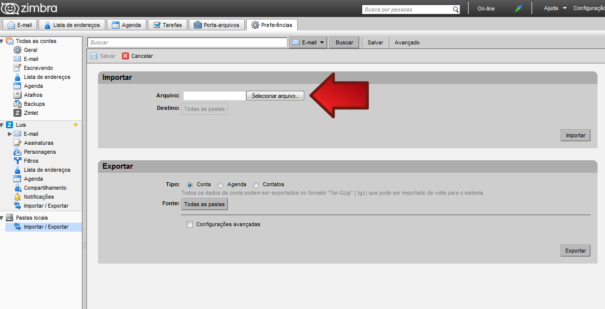 Importar Backup do Zimbra Desktop
