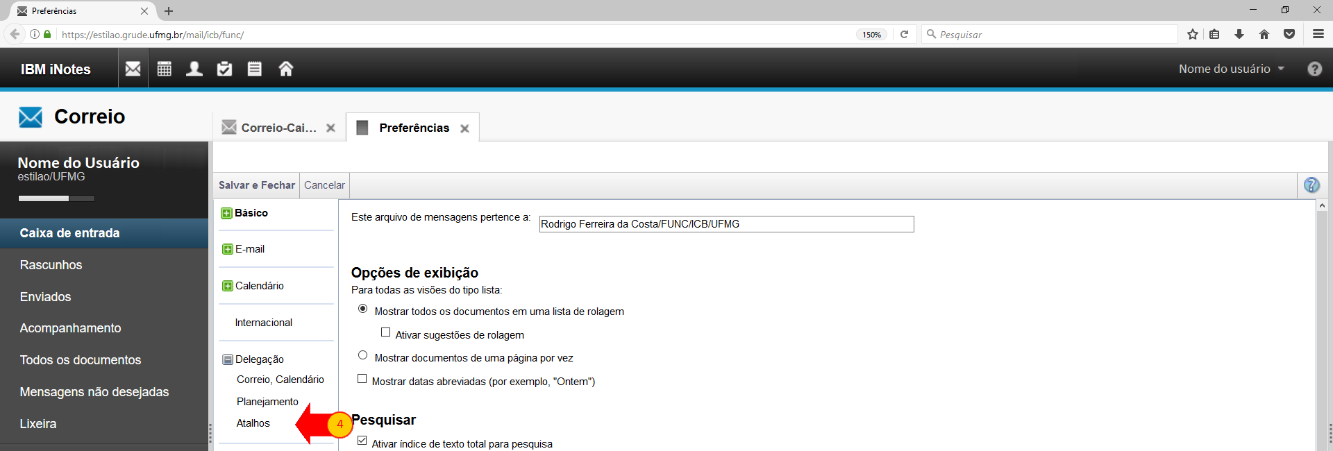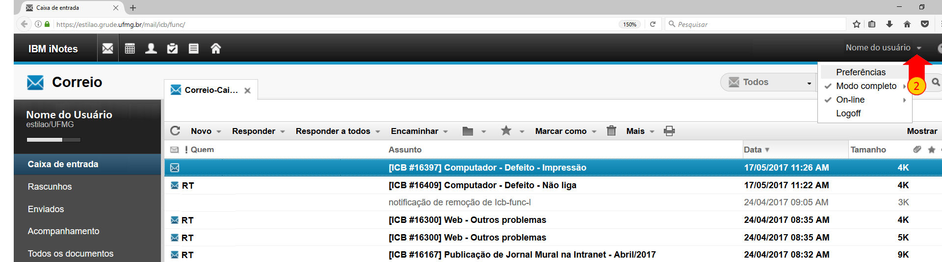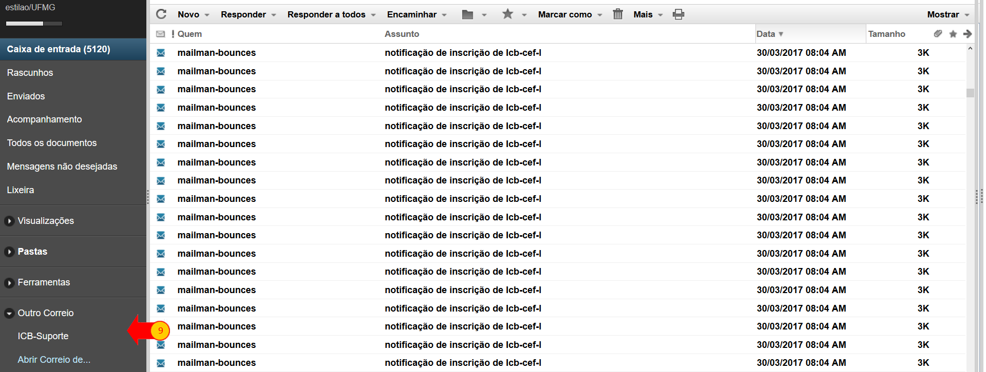 9. A imagem abaixo ilustra como você acessa a Caixa de Correio que acabou de configurar.