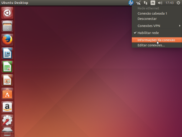 1. Clique na barra superior esquerda no ícone da conexão de rede e depois em “Editar conexões