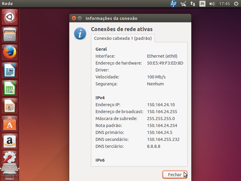12. Veja os dados que o servidor DHCP estático forneceu automaticamente para o seu computador