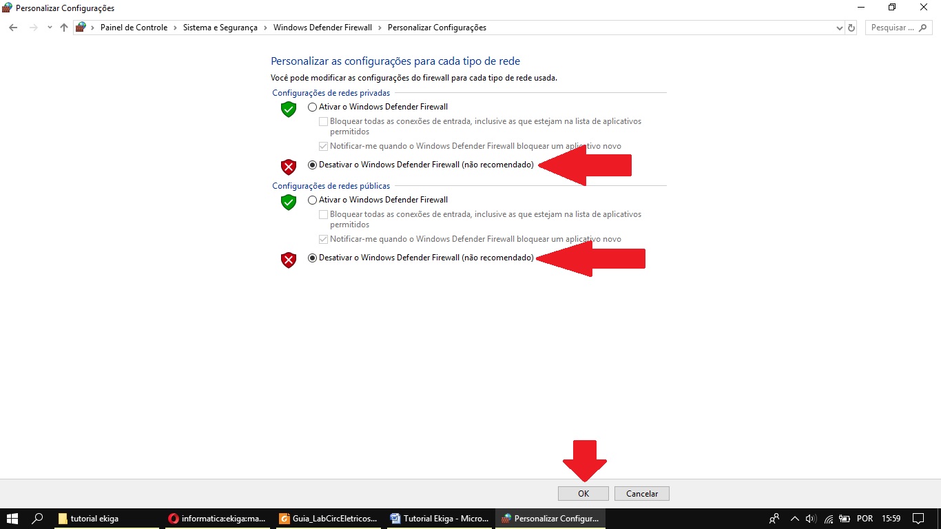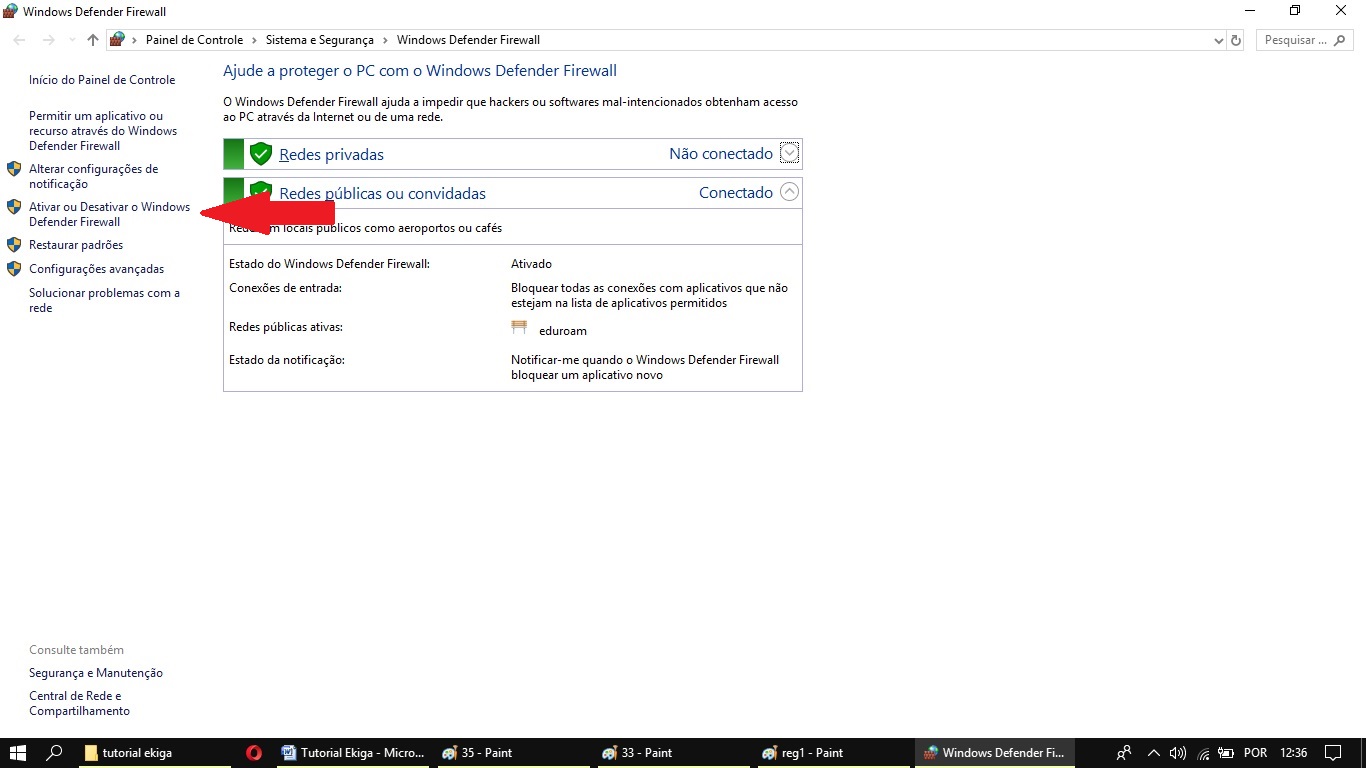 Desativando temporariamente o Firewall do Windows