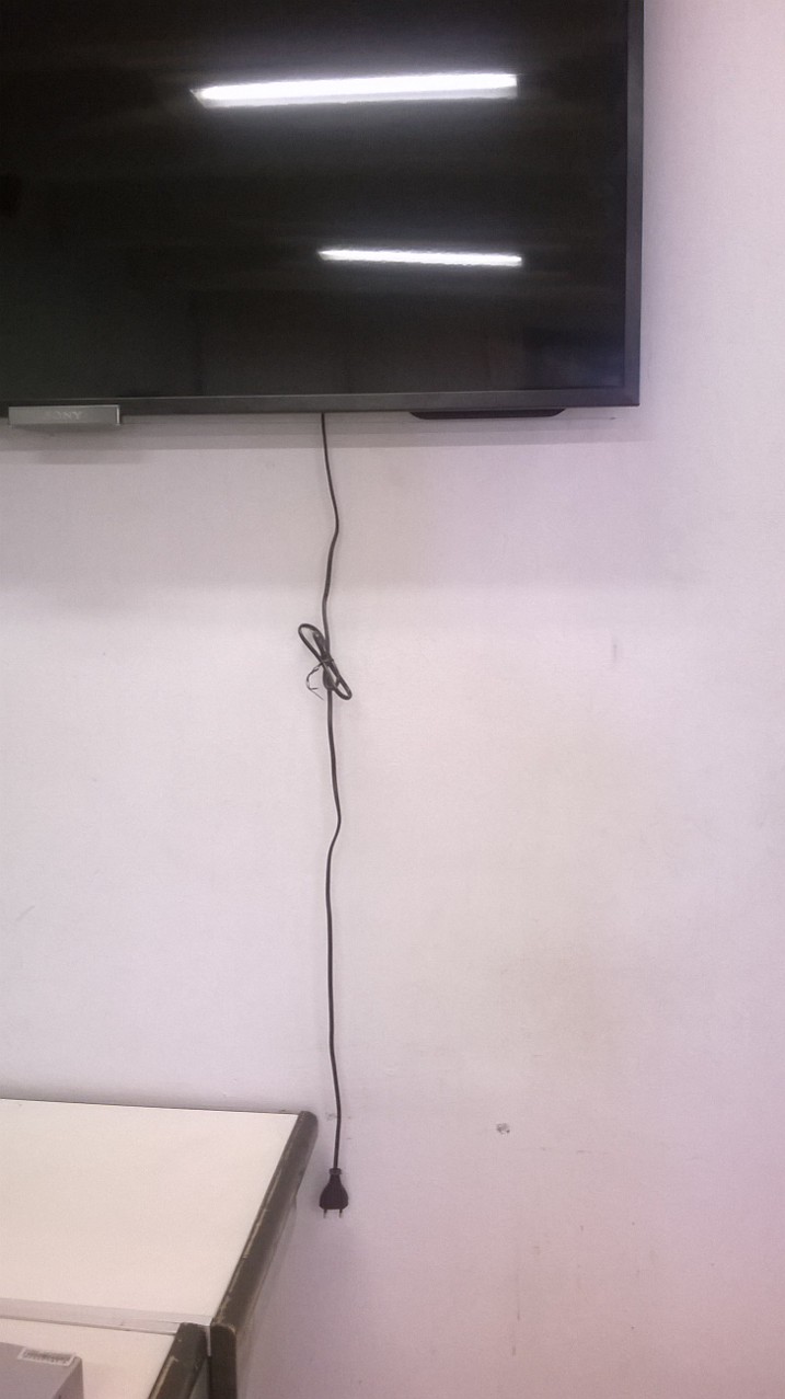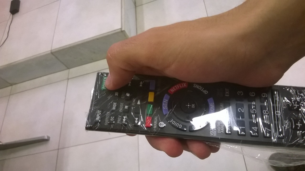 Ligar a TV na tomada logo ao lado. Não precisa ligá-la pelo controle agora.