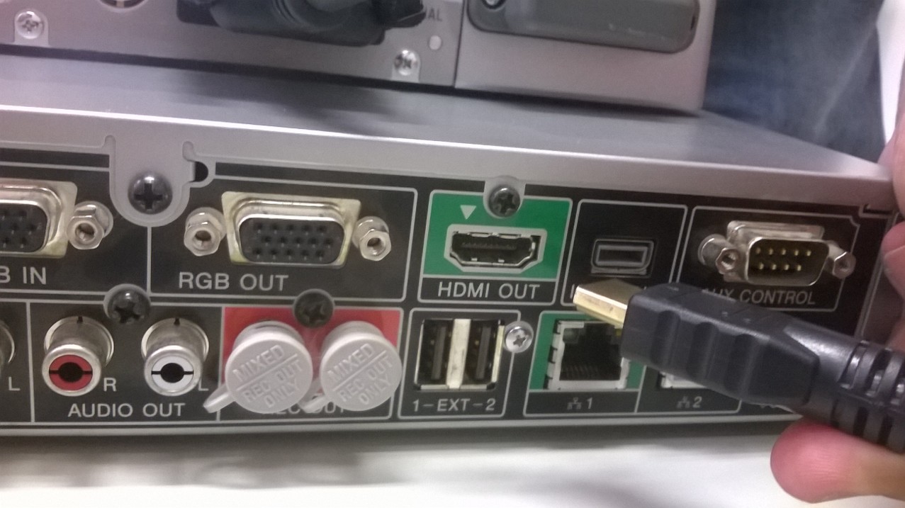 Ligar uma ponta do cabo HDMI na traseira do aparelho (na conexão onde se lê HDMI OUT) e outra na entrada HDMI da TV (localizada na lateral esquerda da TV).