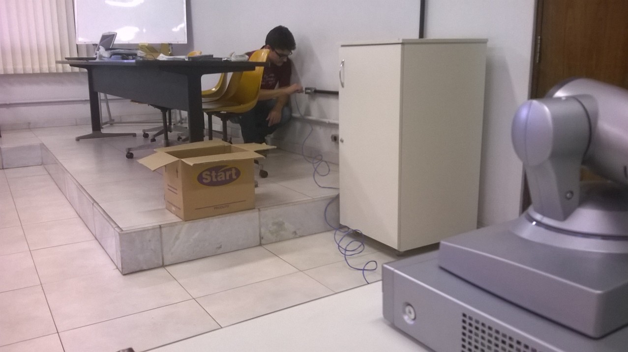No momento a TV da Congregação do ICB não encontra-se disponível para utilização, então o usuário deverá levar o monitor citado no item anterior.