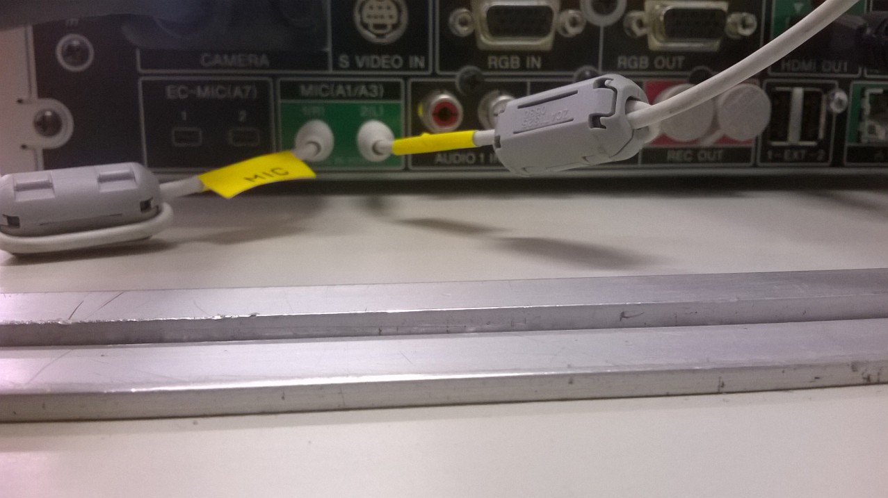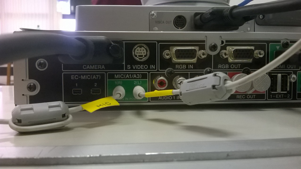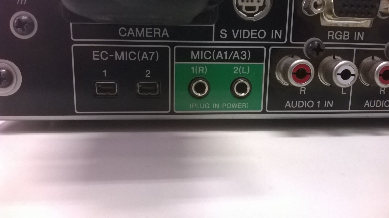 Ligar os dois microfones, na traseira do aparelho, onde se lê “MIC (A1/A3)”.