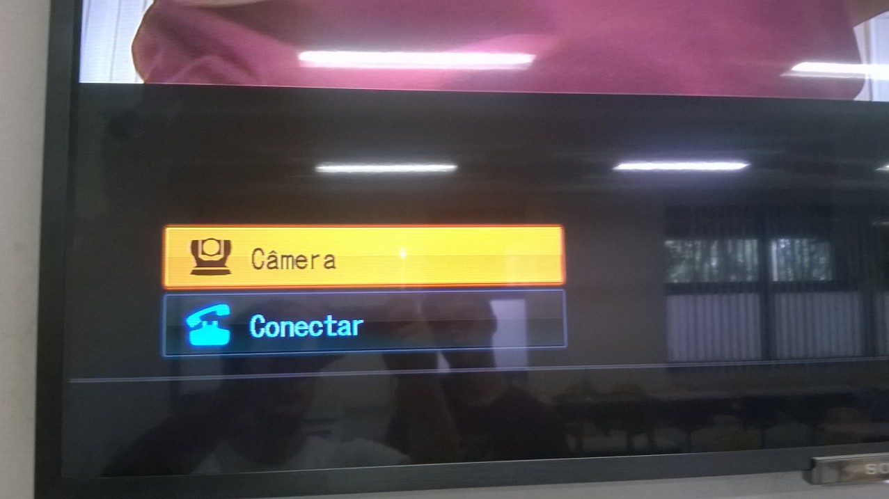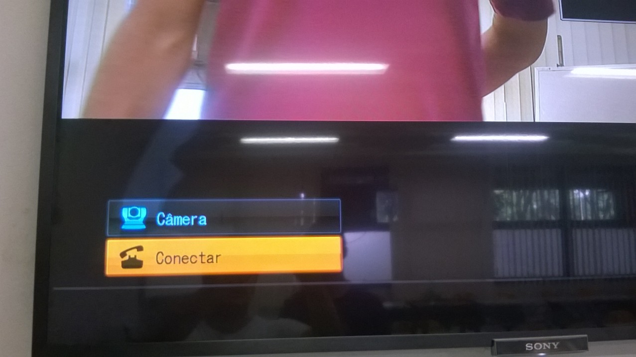 Caso prefira você mesmo fazer a chamada, deverá ir na opção CONECTAR utilizando o controle remoto cinza. Então escolha DIGITAR NÚMERO / ENDEREÇO e digite o IP informado pela outra pessoa, lembrando de colocar os pontos entre os números do IP. Confirmar no botão ENTER do controle remoto e então aguardar que seja atendido.
